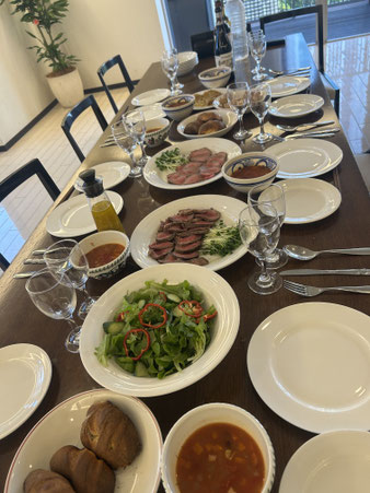 今回は第8回と献立がほぼ同じなので詳細は省きますが、いつもに増して作業分担が効率的に行われ、パンの焼き上がり1時間半よりも早く全ての準備が出来、早々と乾杯出来ました。